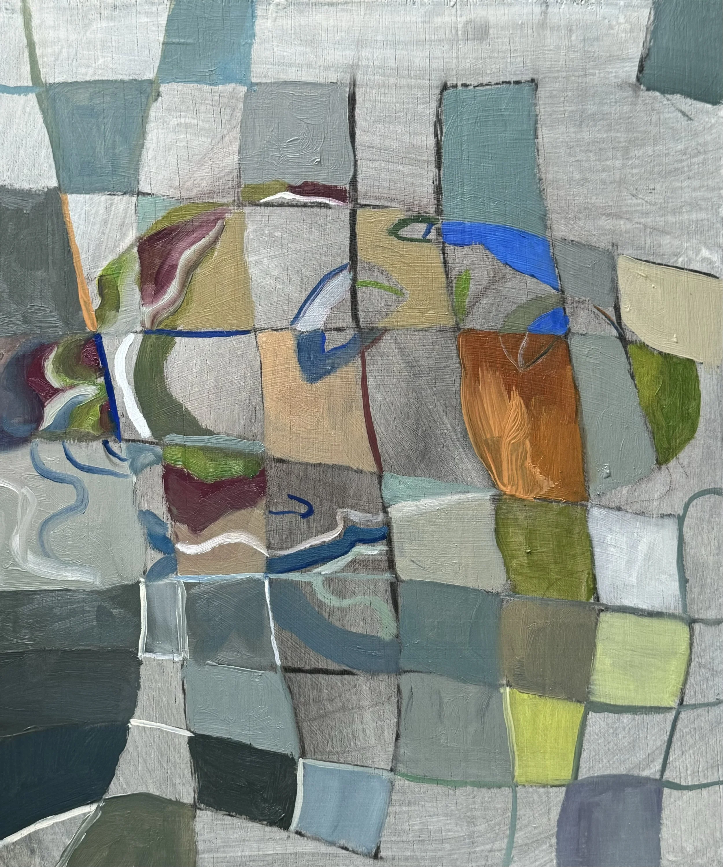 My practice is currently very intuitive (=all over the place), but I wanted to use the promt to push myself a little bit, creating constraints for the shapes. I used a reference photo of my partner floating in a pool, and just focused on one square at a time.