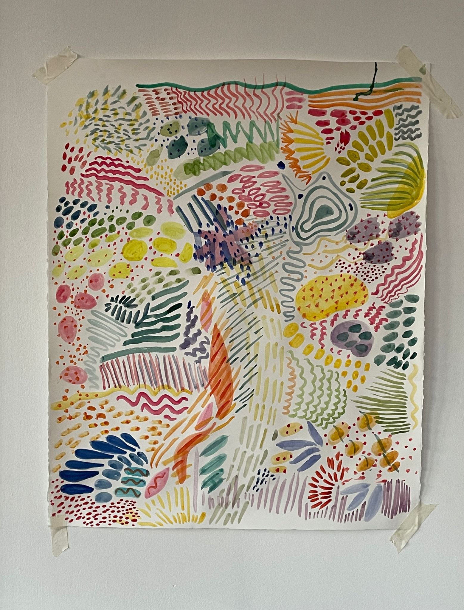 I tried going slower, but couldnt, so I thought hang on I could just go bigger, that will take me longer. As a recovering perfectionist, I hated allowing myself to just scribble and paint and take space, but found it very meditative. Maybe next time I’ll go slower too.